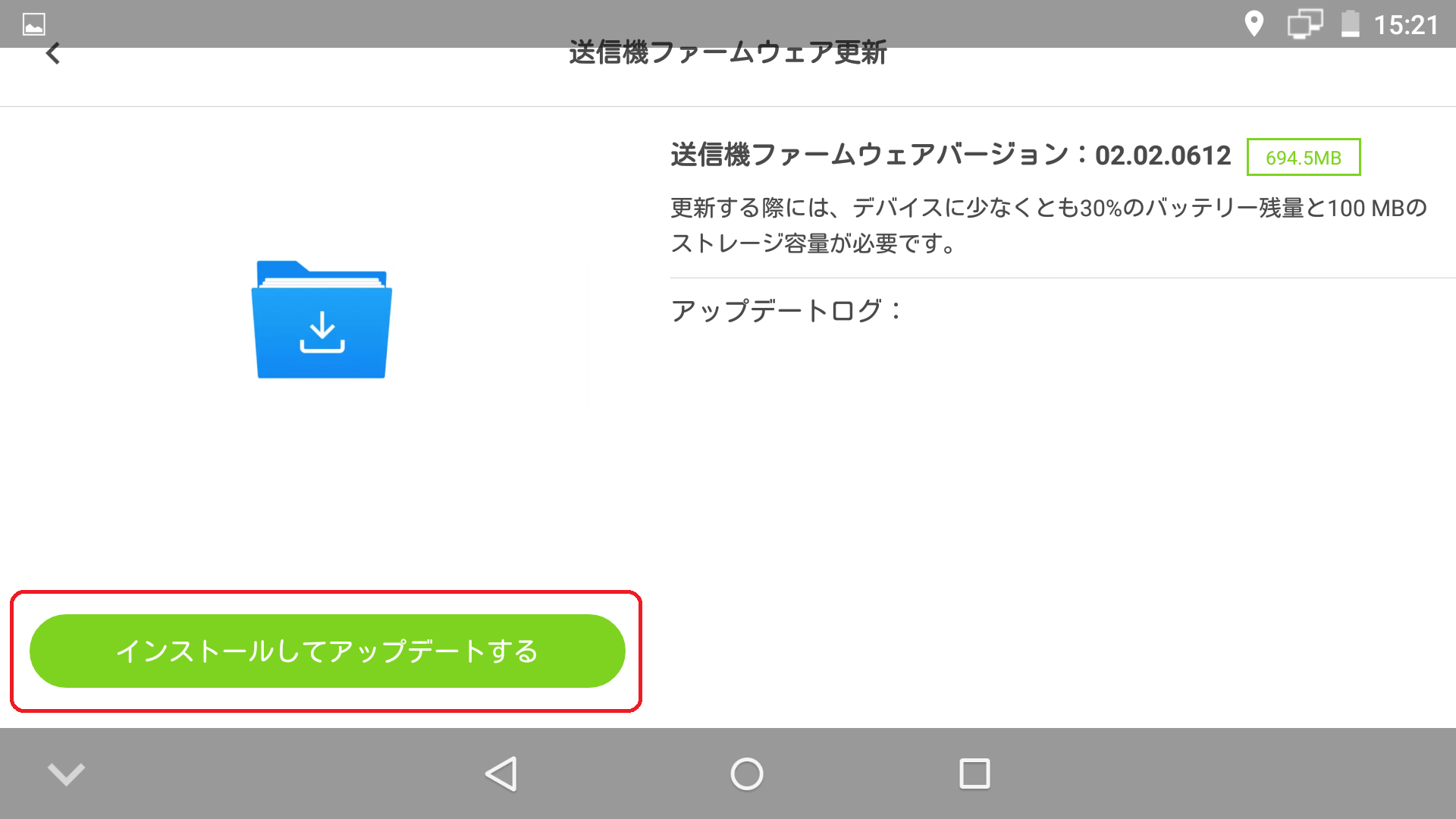 4-1.送信機の場合:「インストールしてアップデートする」を選択すると更新が開始されます