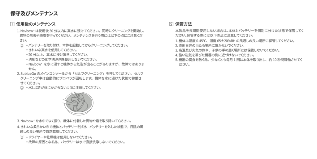 Navbow+ / Seabowのメンテナンス方法および保管方法