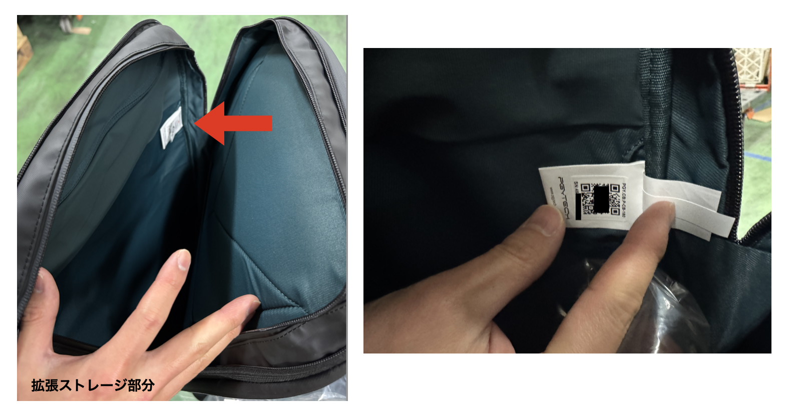 バッグの場合は、タグとしてシリアルナンバー(S/N)が取り付けられています。