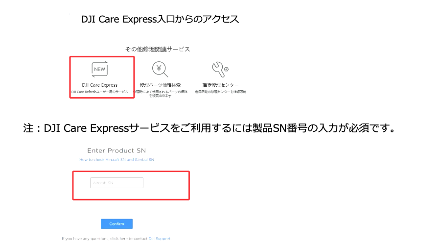 DJI Care Expressサービスご希望のお客様は、