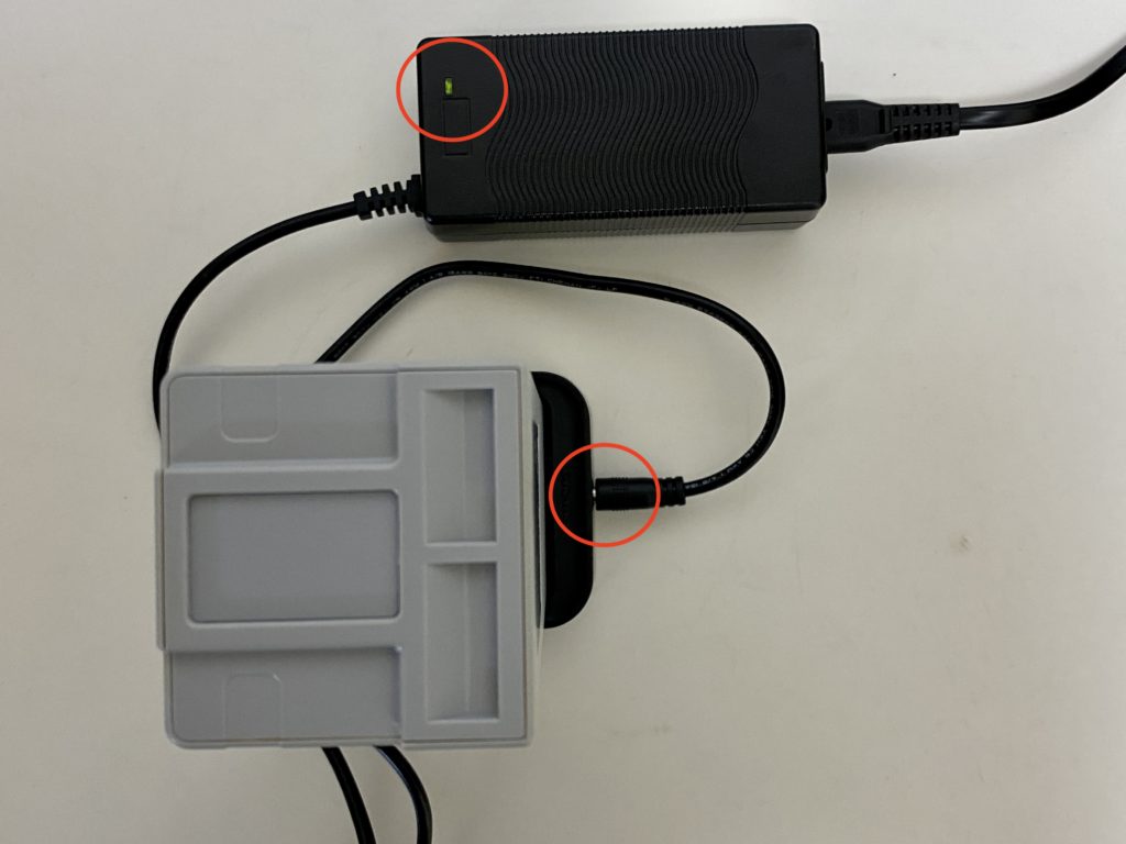 バッテリーを充電する際に充電スタンドと充電アダプターがしっかしと接続されているかご確認ください。