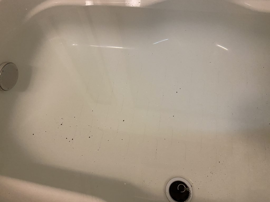 下記は一度現場で真水で洗浄した機体を洗浄した後の様子です。砂や砂利が排出されること解ります。