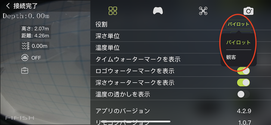 QYSEA FIFISH Vシリーズ / W6 マスター/スレーブ機能について(携帯端末を2台接続し、映像をメイン端末以外に映し出す方法)