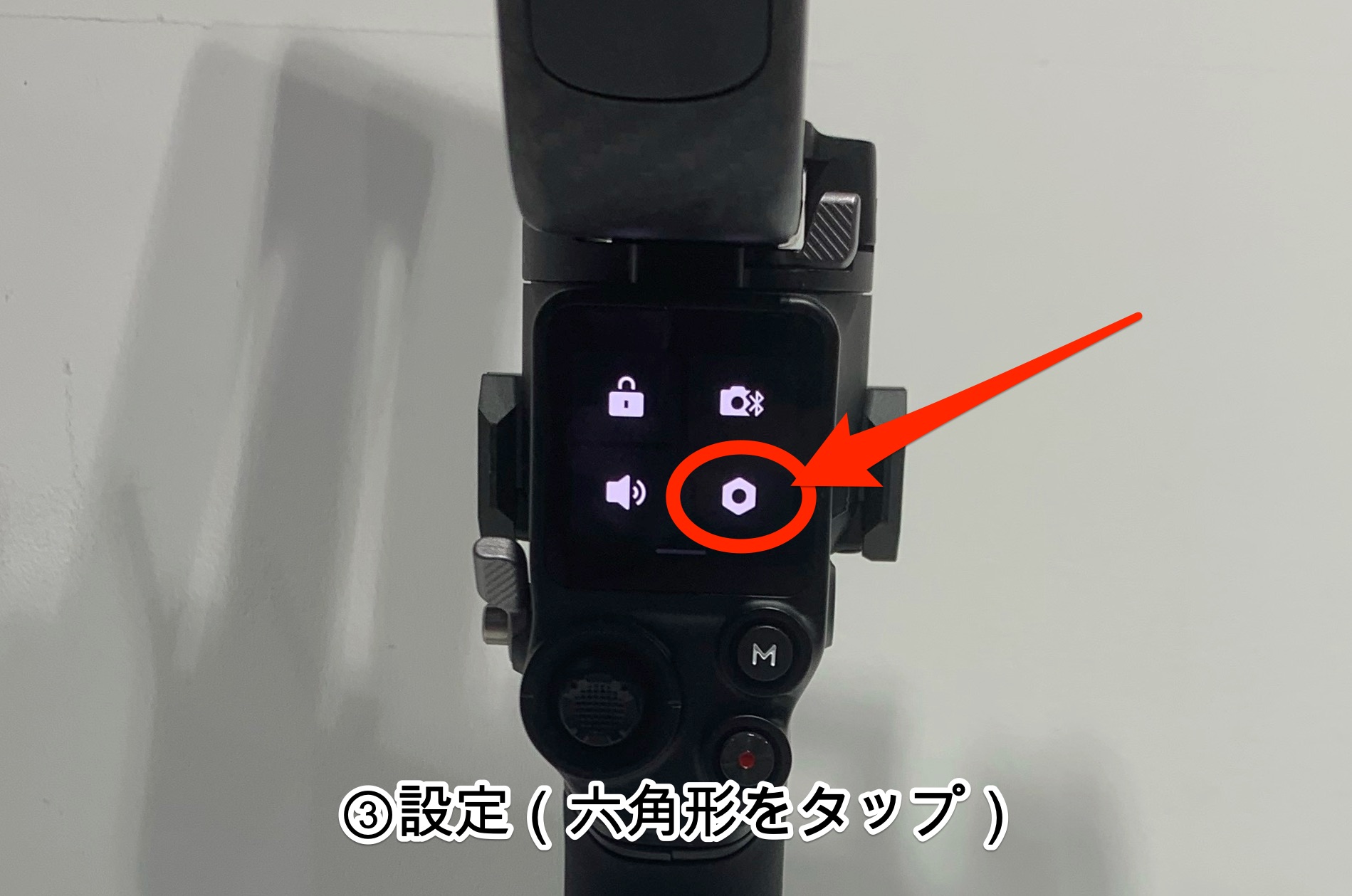 3,設定(六角形)をタップ