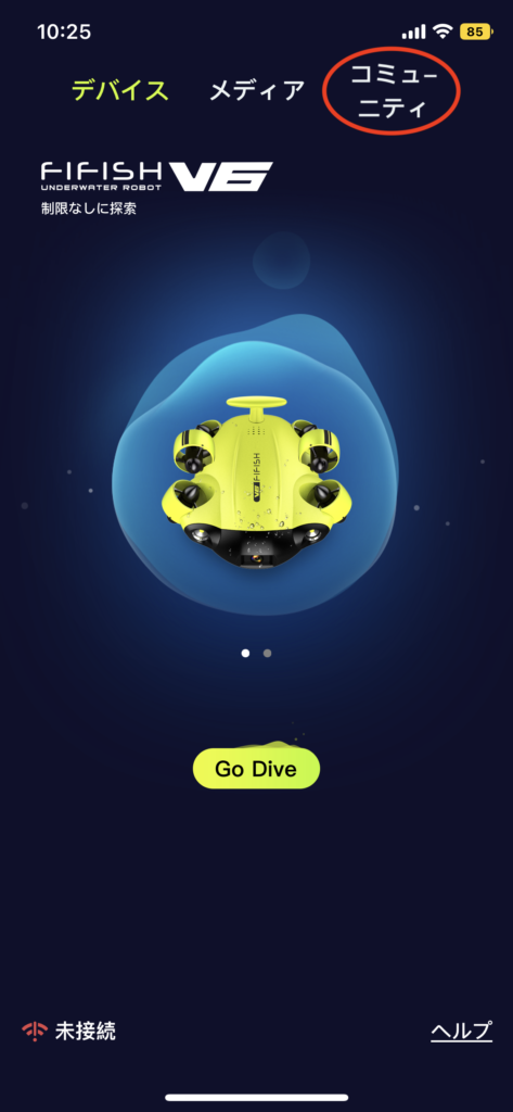 「コミニュティ」という項目が追加され、写真や動画のシェア機能などのFIFISHユーザー同士での交流が可能となりました。