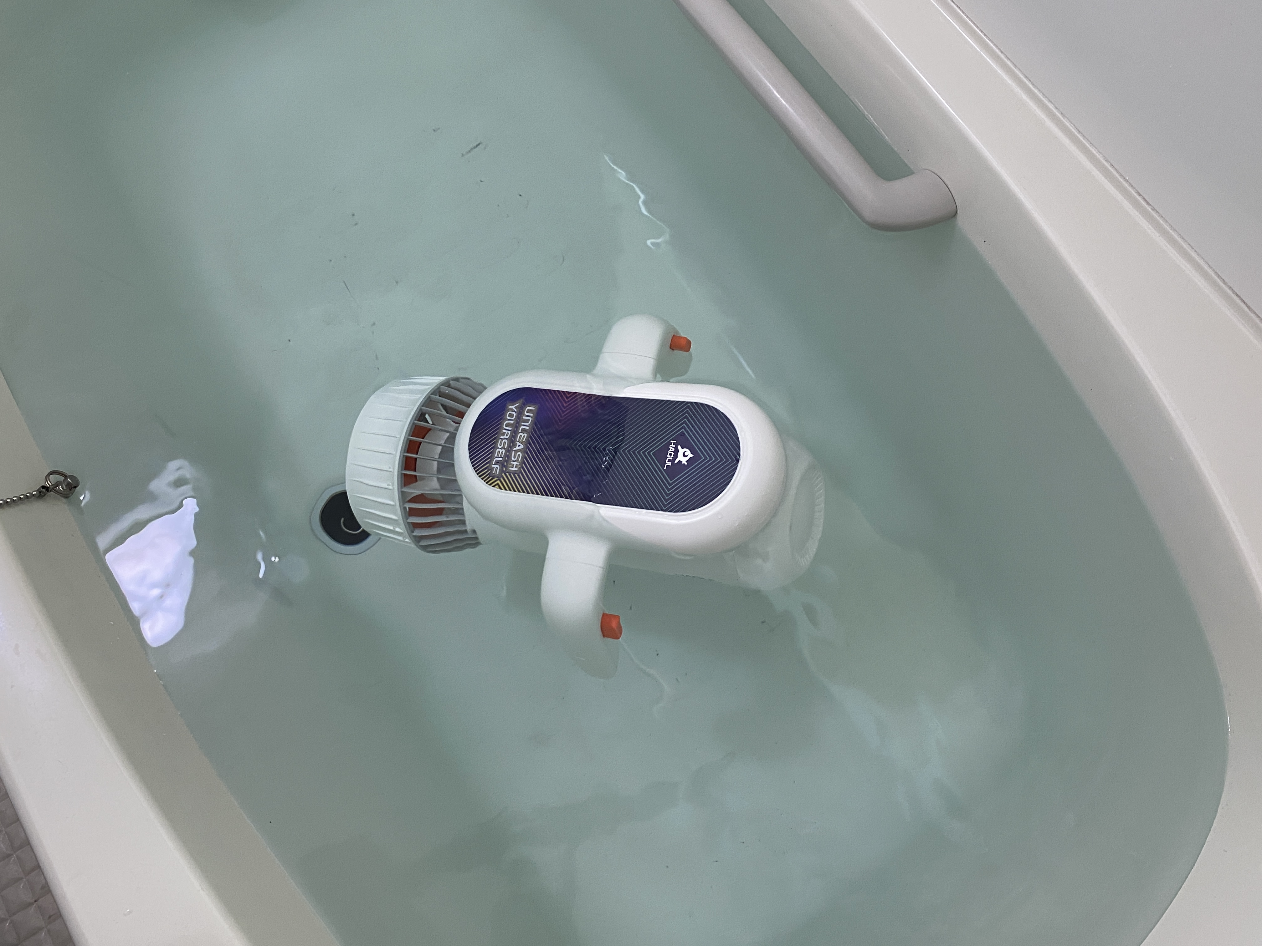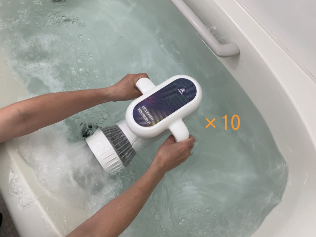 3.本体が浸かるように浸して3秒間程度モーターを回転させます。
