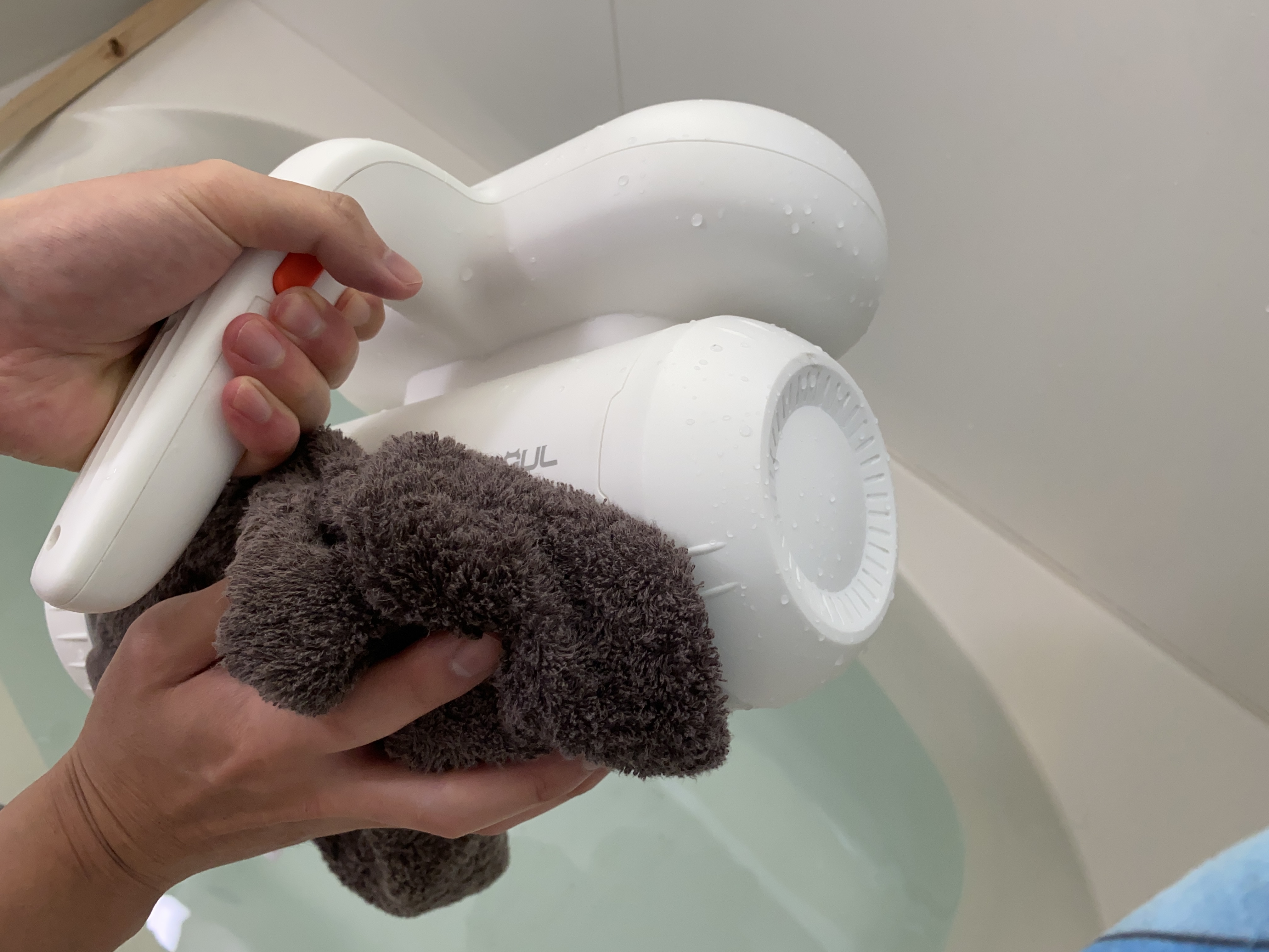 6.浴室乾燥もしくは風通しの良い日陰で十分に乾かしてください。ローター内に水分が残っている場合もありますので、外装が乾いた後に地上でモーターを10秒ほど回転させてください。水分が出る場合は拭き取って、引き続き乾かしてください。