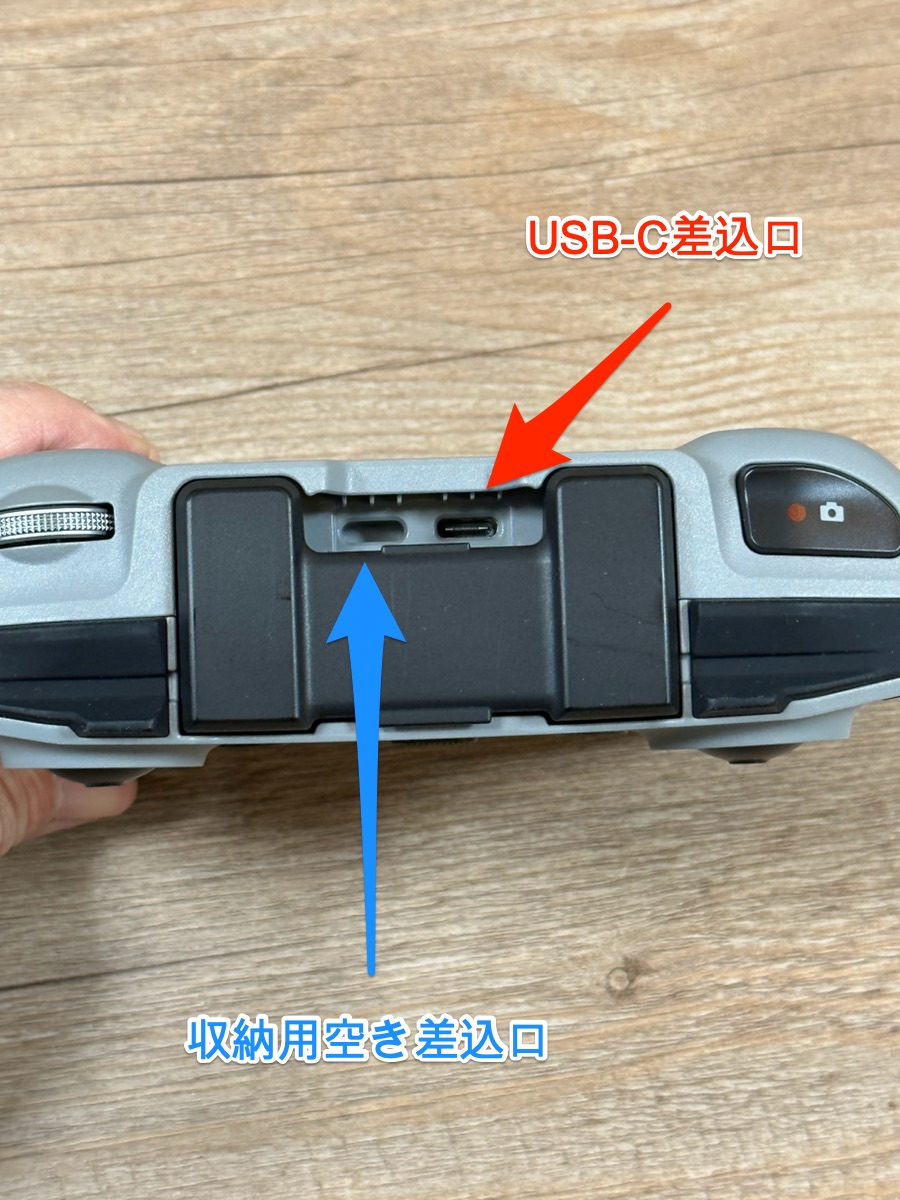 RC−N1送信機では上から見て右側が「USB−Cの差込口」
