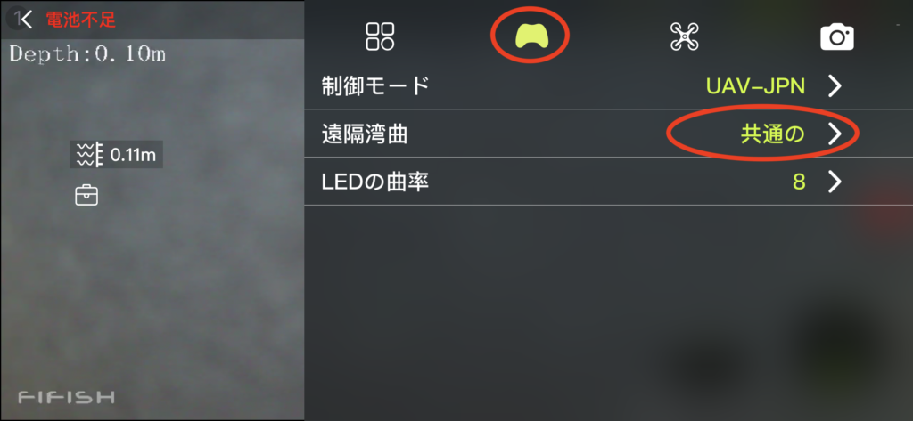 QYSEA FIFISH 遠隔湾曲(スティック感度)設定について