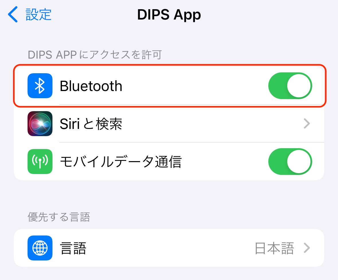 3.端末の設定で、DIPS APPがBluetoothの使用を許可がされているかをご確認ください。