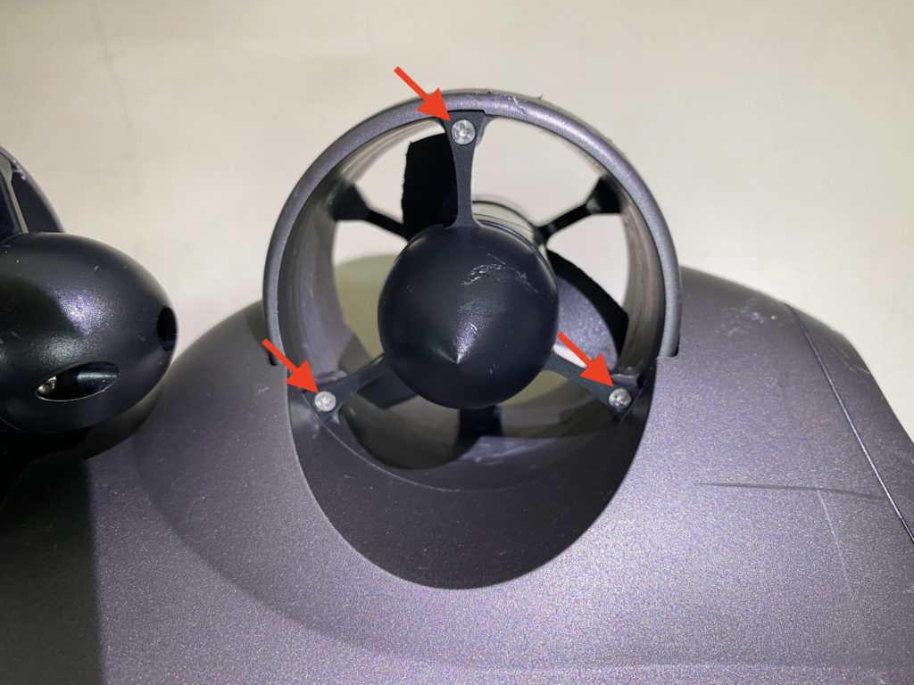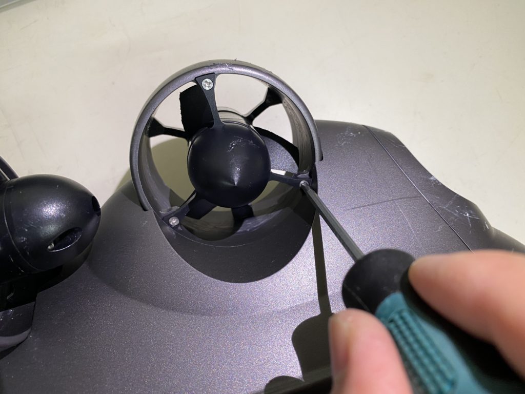 ※スラスターを抑えながらビスを回してください。スラスターが鋭利なので状況に応じて手袋などをして安全に行ってください。