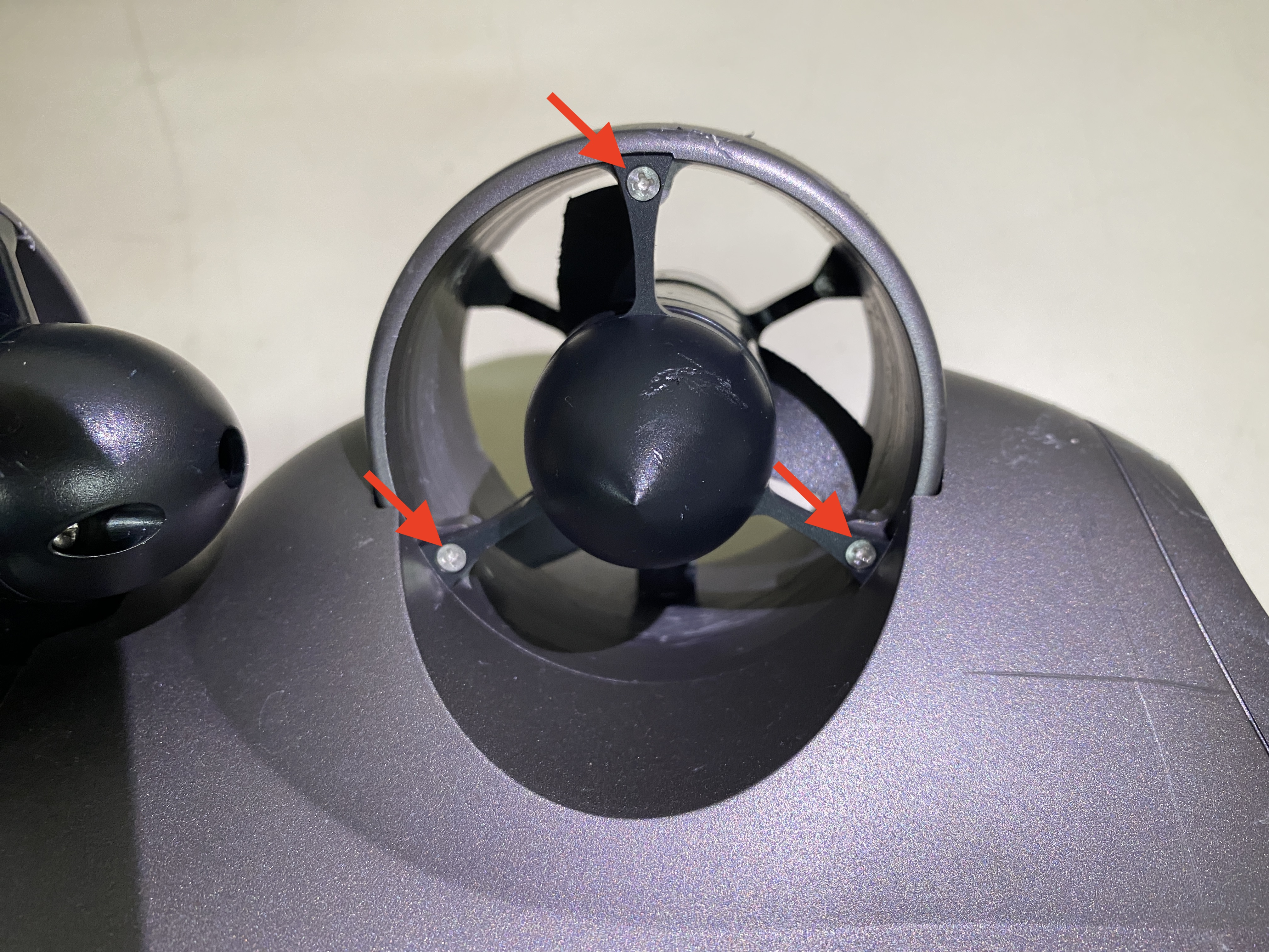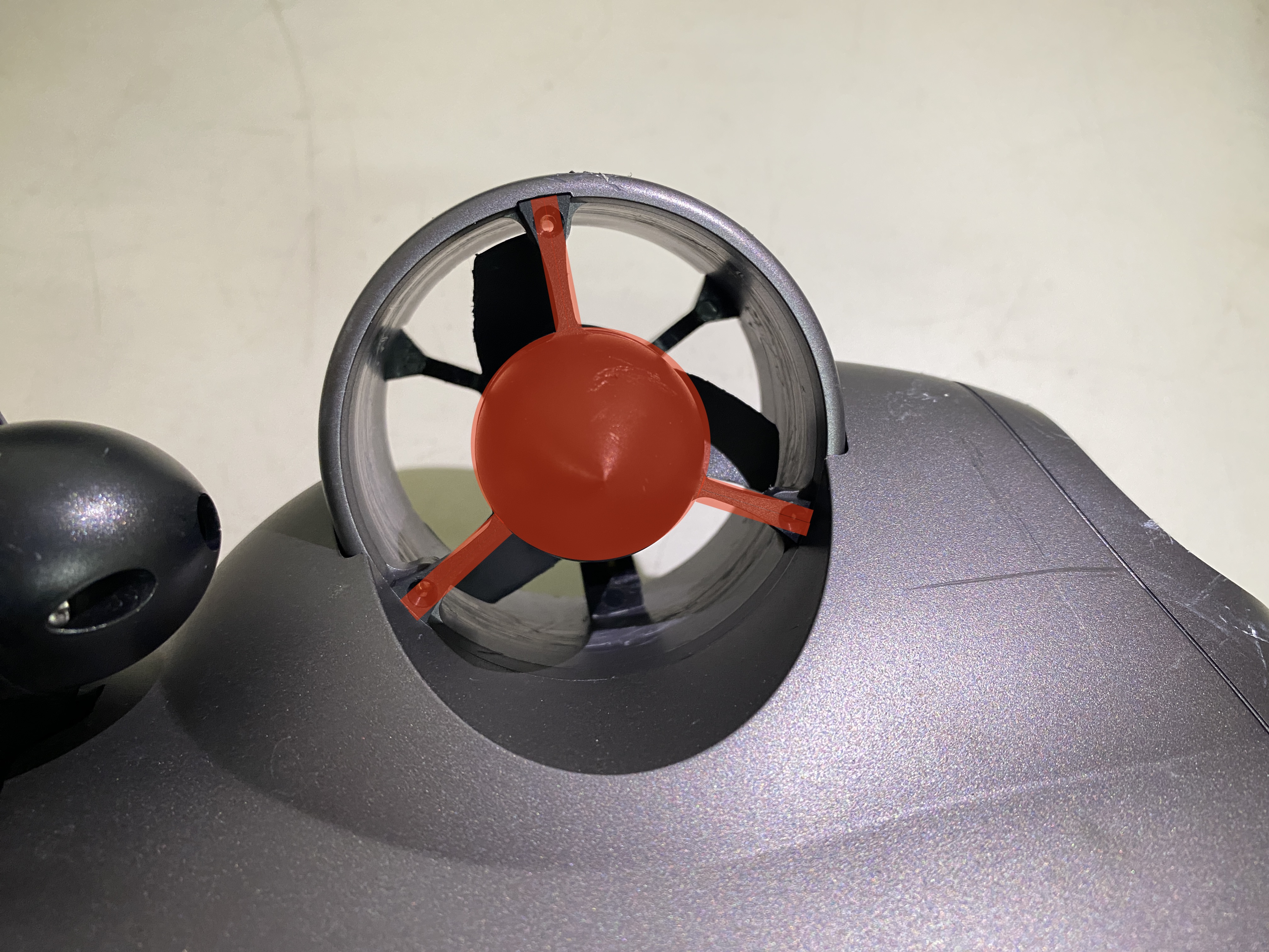 2.スラスターカバー(以下の写真の赤く表記した箇所)を取り外します。なお、砂や塩などが噛んでいると取り外しづらい場合がございます。破損しないように気をつけてください。