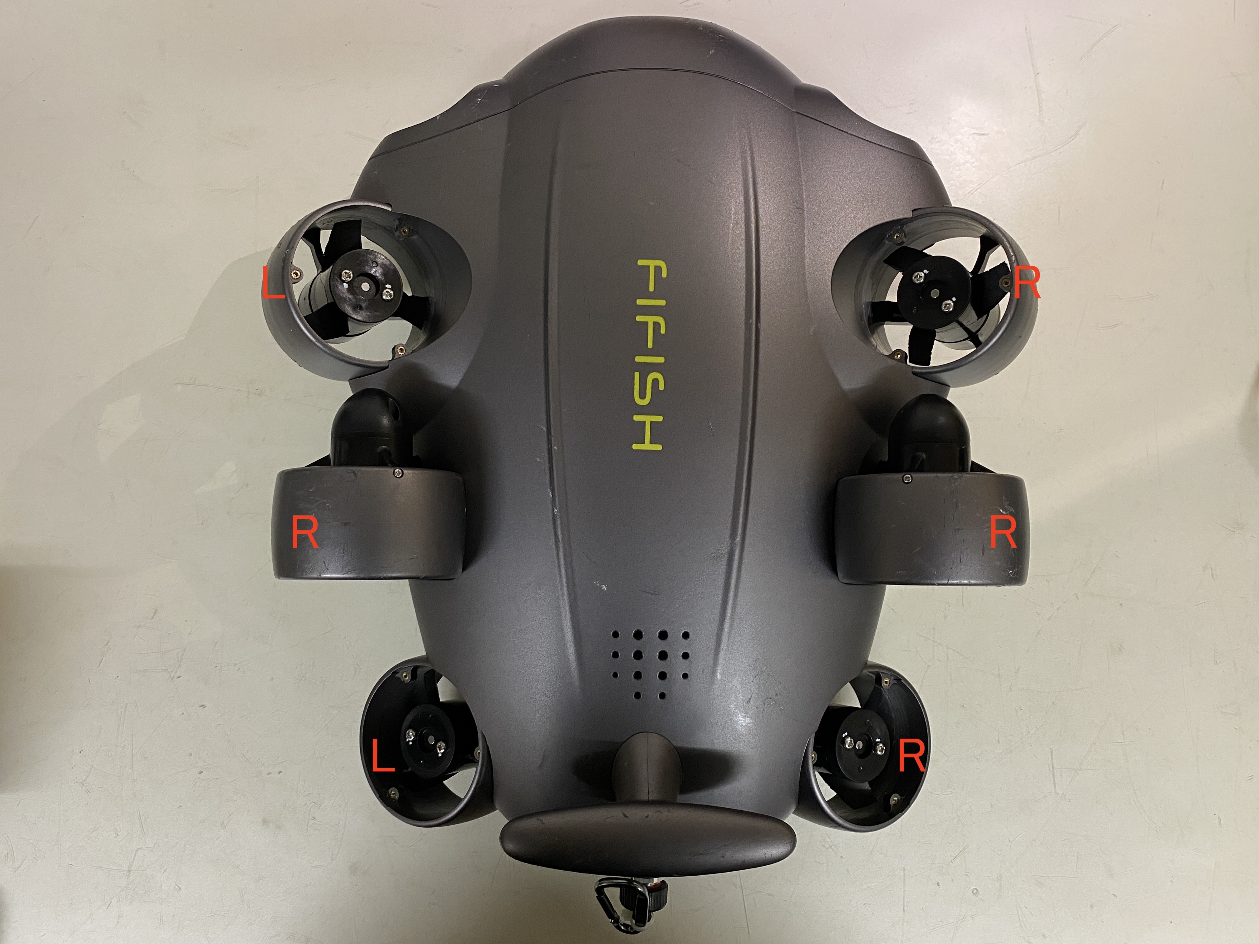 ※取り付ける際にスラスターの「R」と「L」を間違いないように十分にご注意ください。間違えて取り付けをされた場合、水中で正常に動作せず、破損の原因となります。