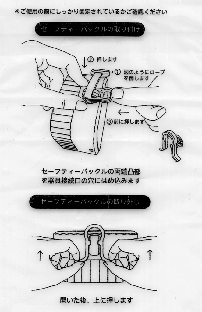 (セーフティバックルが梱包されている袋に、以下のように記載してあります。)