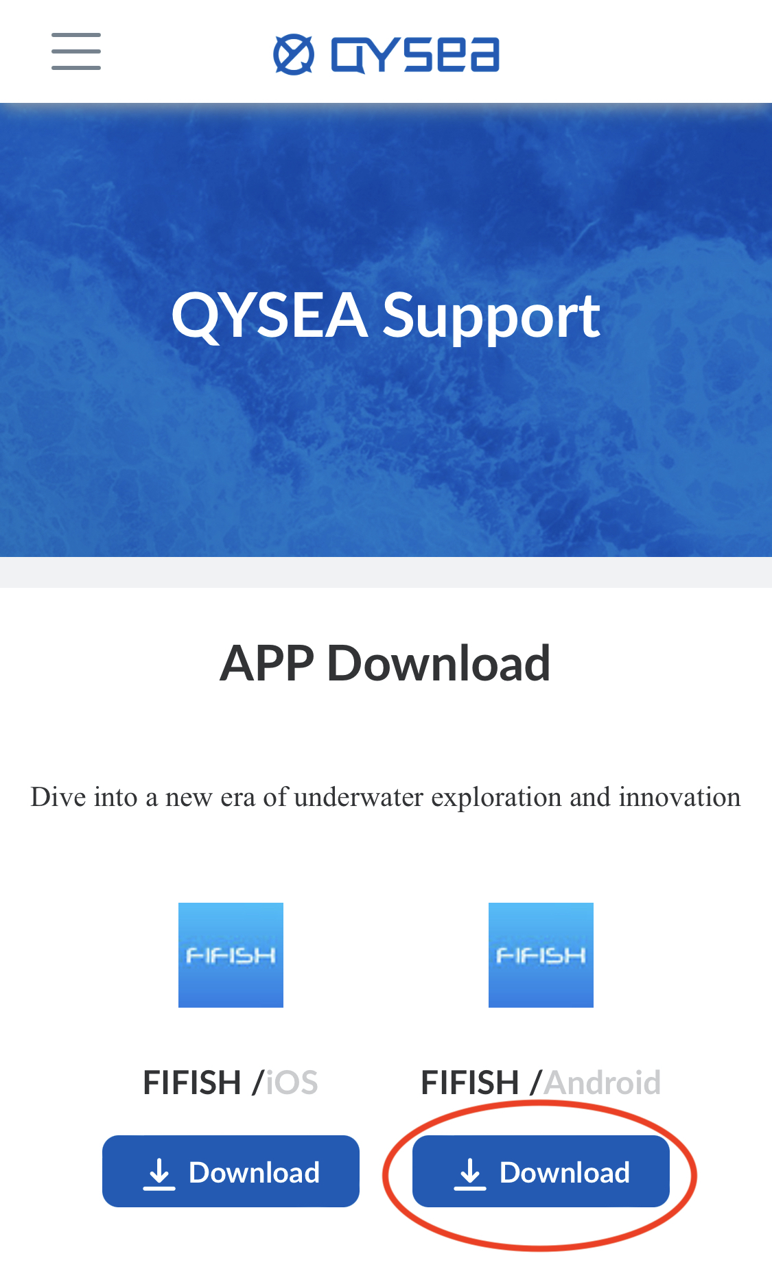 【 FIFISH /Android 】の下にある【 Download 】をタップ。Android APKファイルのダウンロードが開始されます。