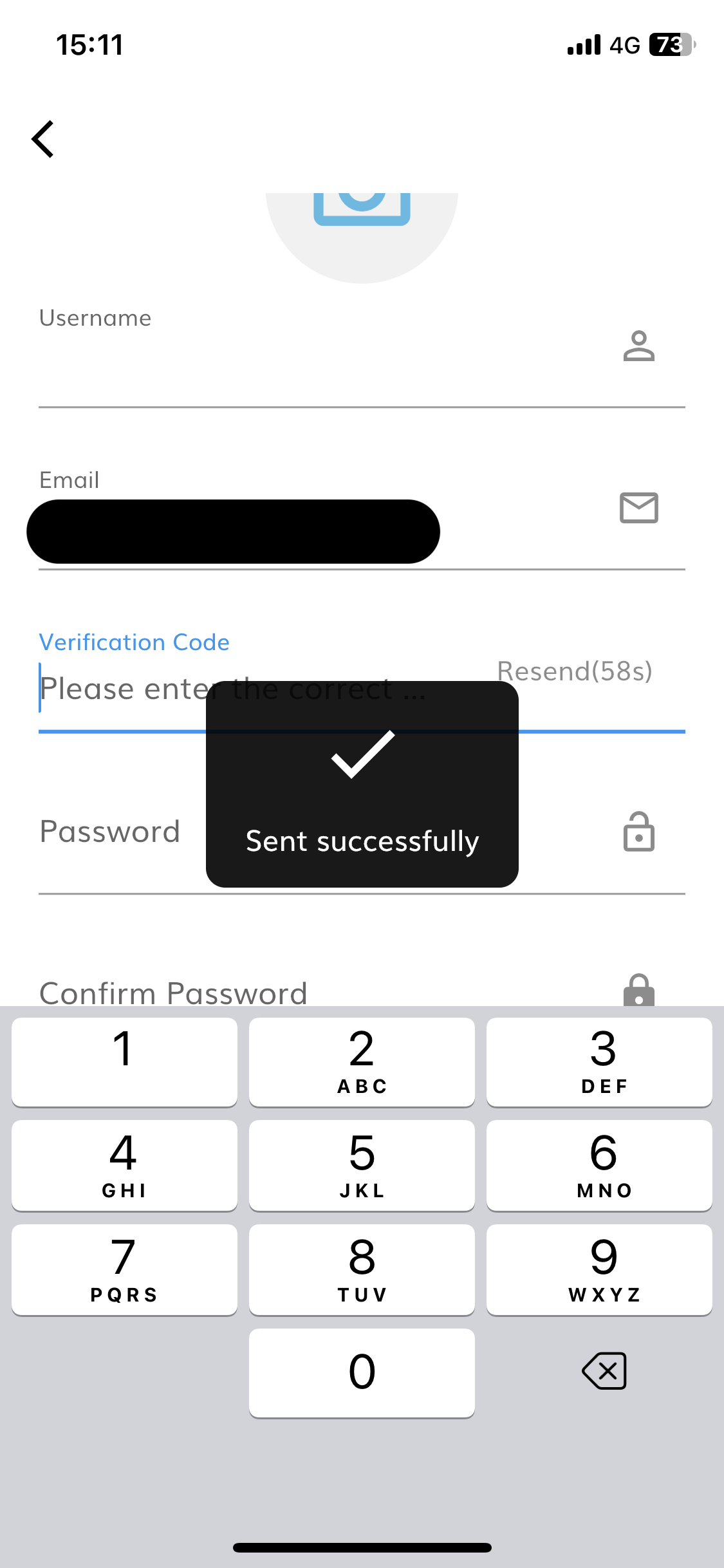 4.(3.)で入力したメールアドレス宛に、「Verification Code」が届くので、アプリ上の「Verification Code」欄に入力