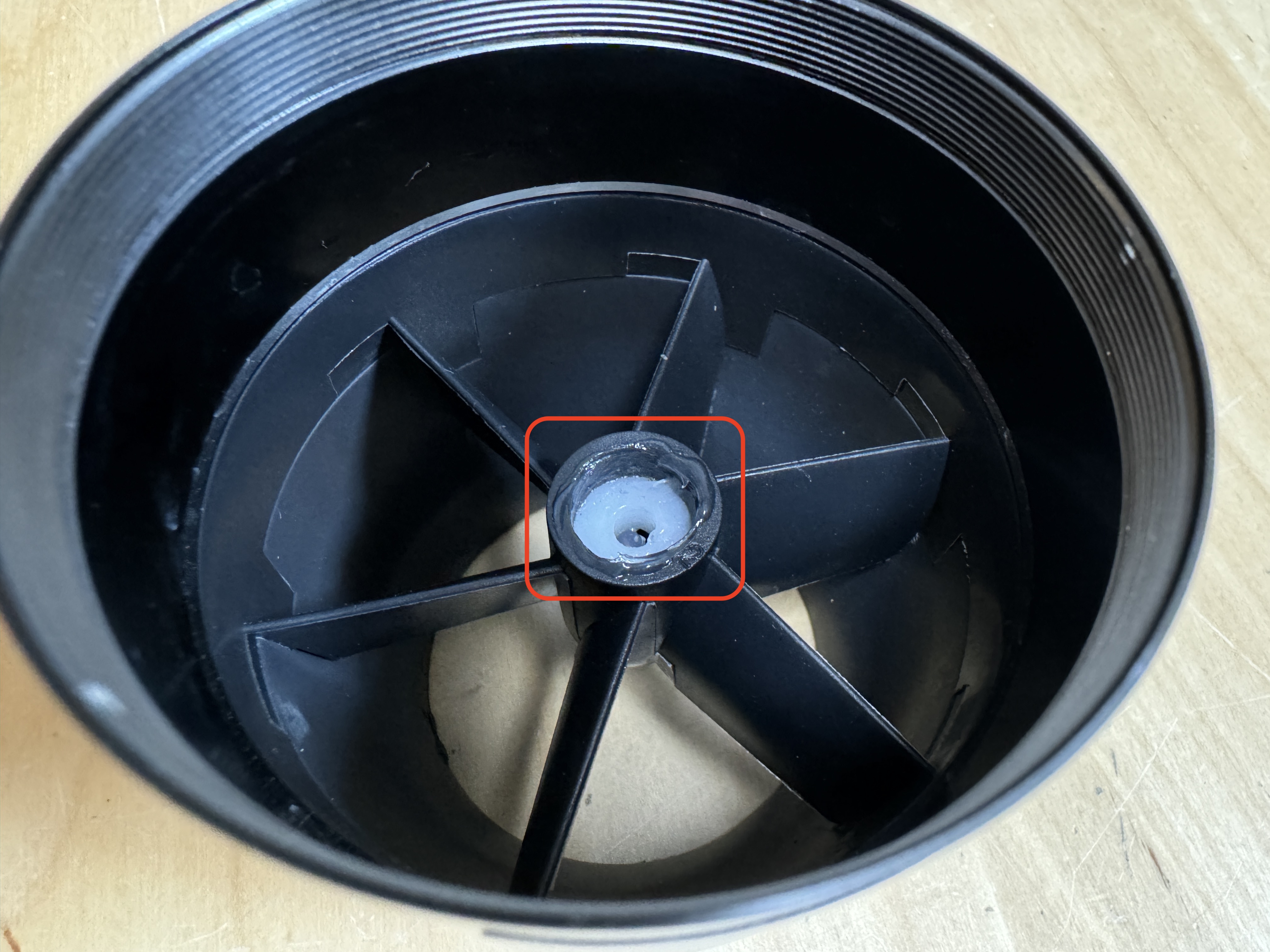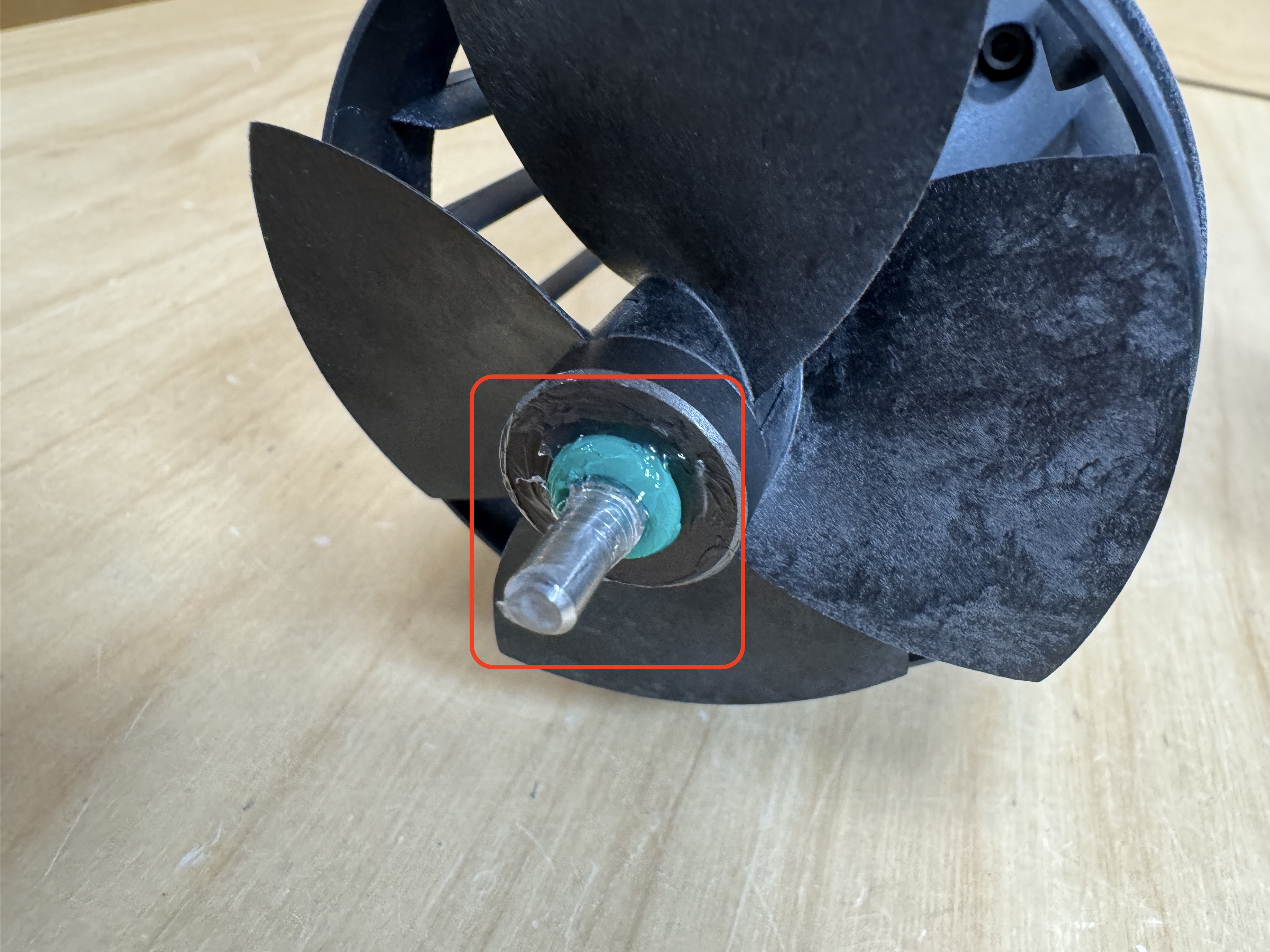 リアカバーの以下の箇所についてもプロペラのスムーズな回転のために、グリース塗布が必要となります。回転がスムーズでない場合や回転音が大きな場合は特にグリース塗布が少ない場合がございます。