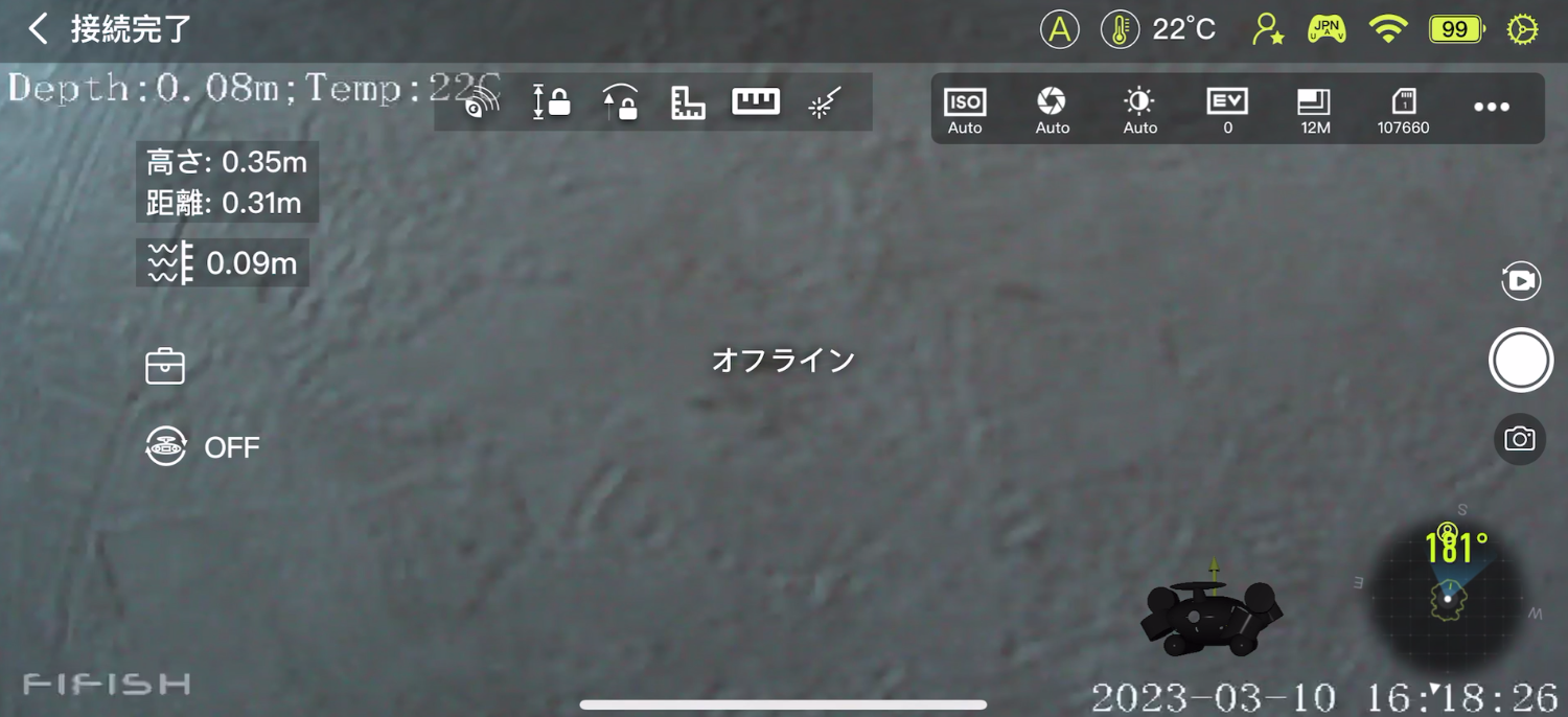 QYSEA FIFISH シリーズ 撮影モード切り替え時にオフラインと表示されますが正常ですか?
