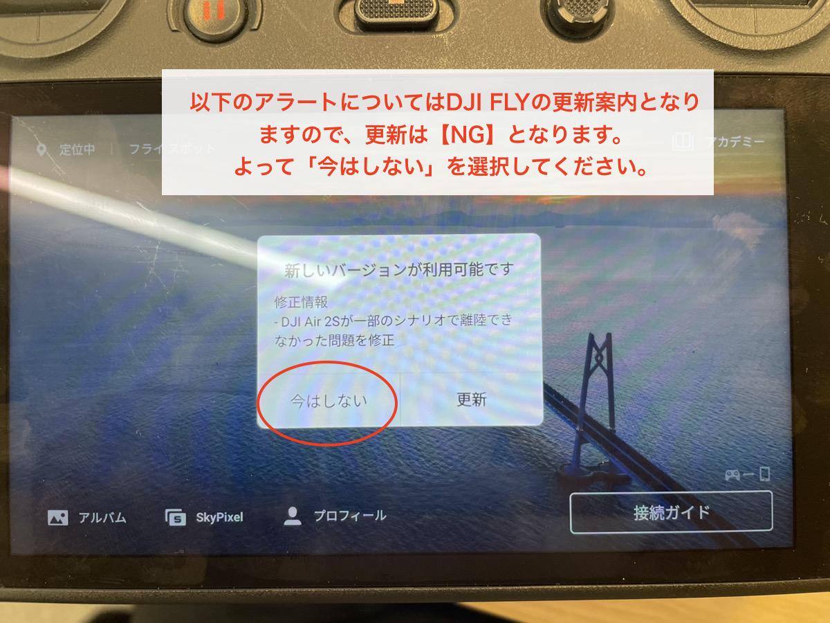 A1.いいえ。こちらは「DJI FLY」の更新のアラートとなります。こちらを更新してしまうと「DJI Fly (For Mavic 3 Classic Atti Mode)」が消えてしまいます。更新しないようにご注意ください。