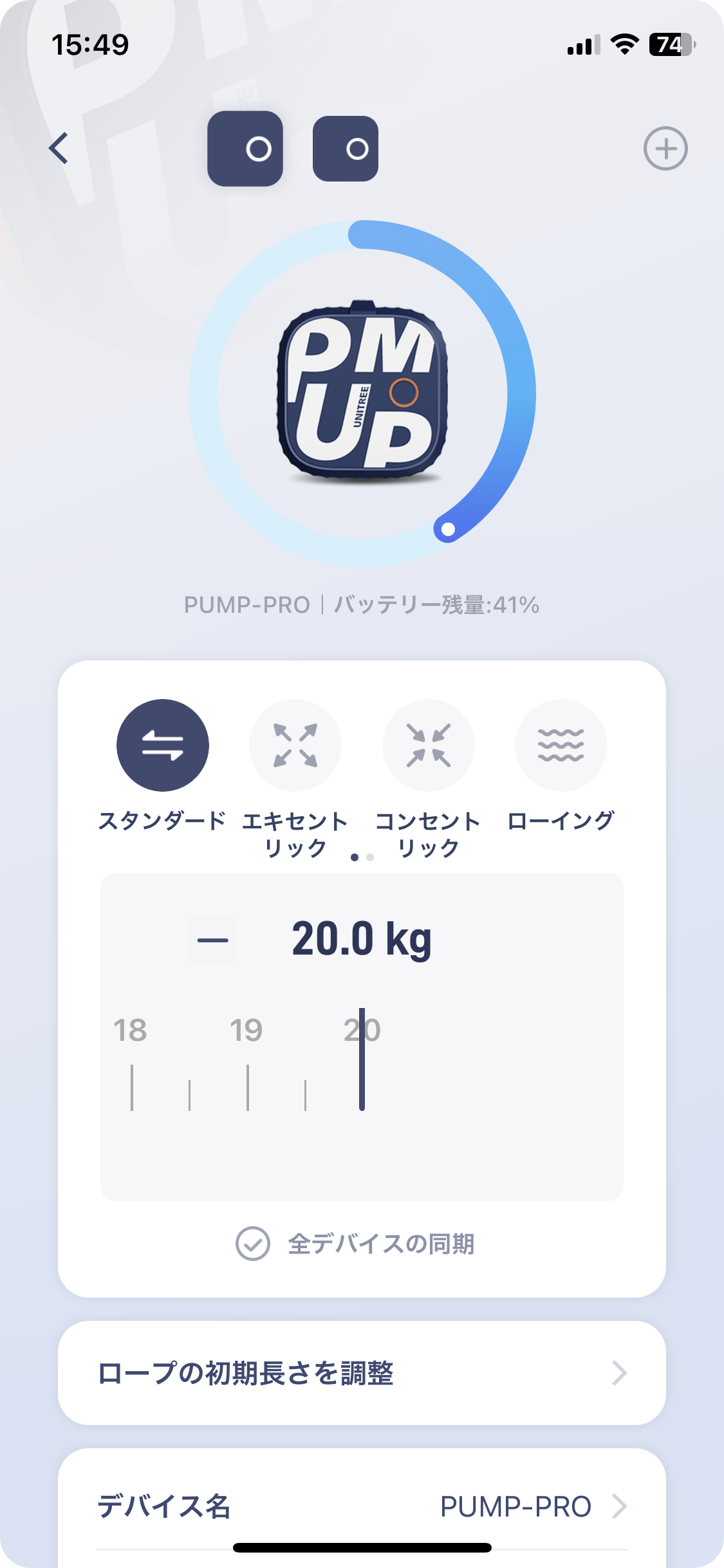 (例)Fitness Pumo APPに2台接続いる状態で、片方を20kgに設定した場合、もう片方も20kgとなります。