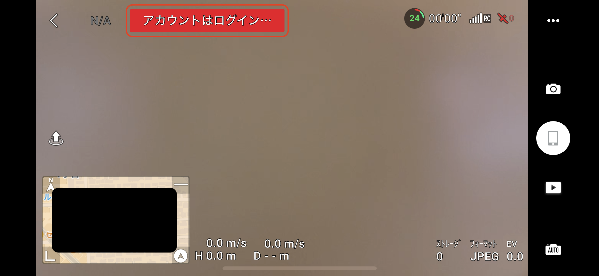 パイロット画面の左上に「アカウントはログイン・・・」と表示されている場合は、DJI アカウントにてログインをされていない状態です。