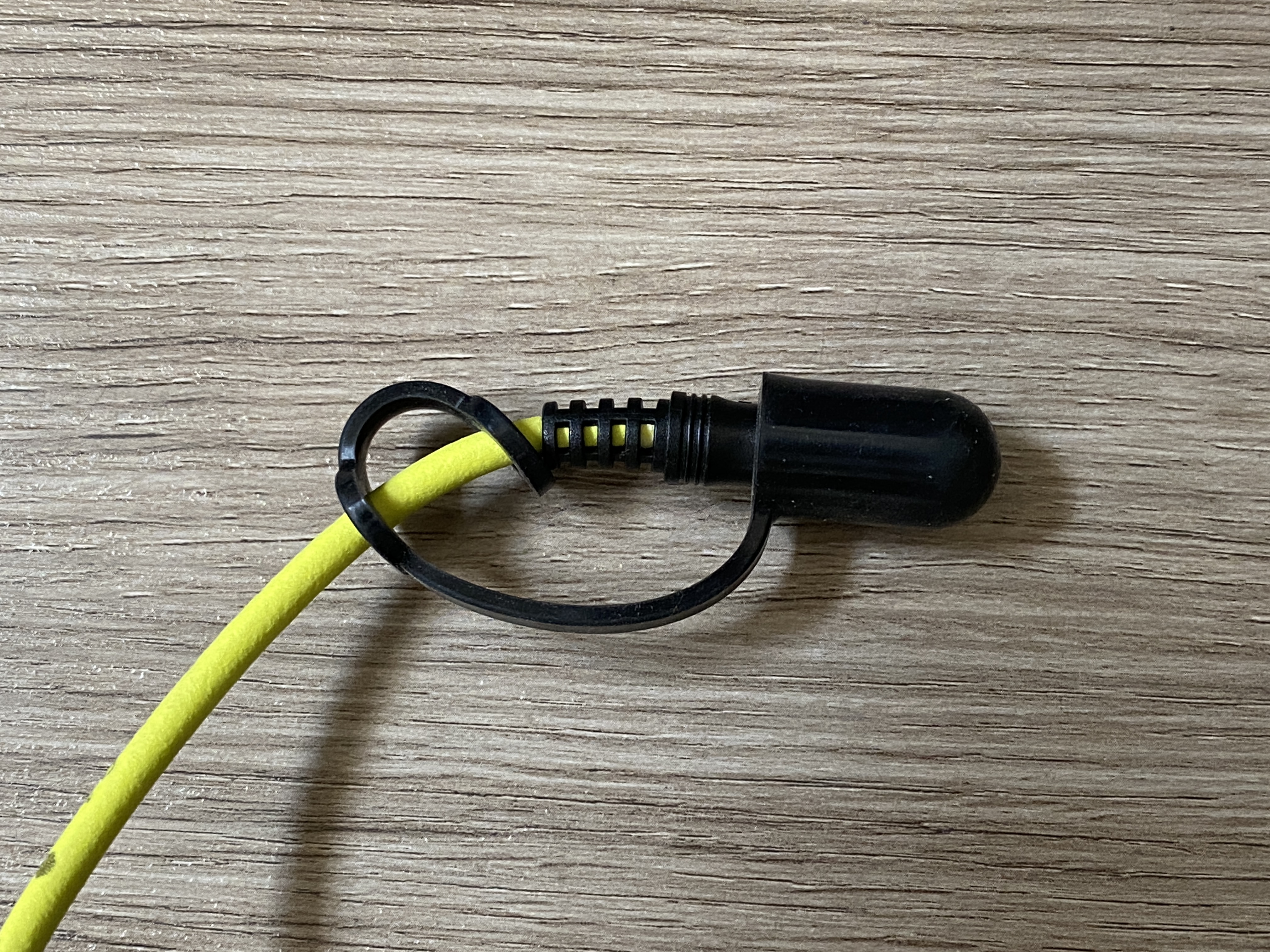 現行(2023/6現在)の製品については、テザーケーブルの送信機接続端子側に保護キャップが付属しています。