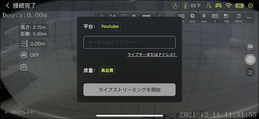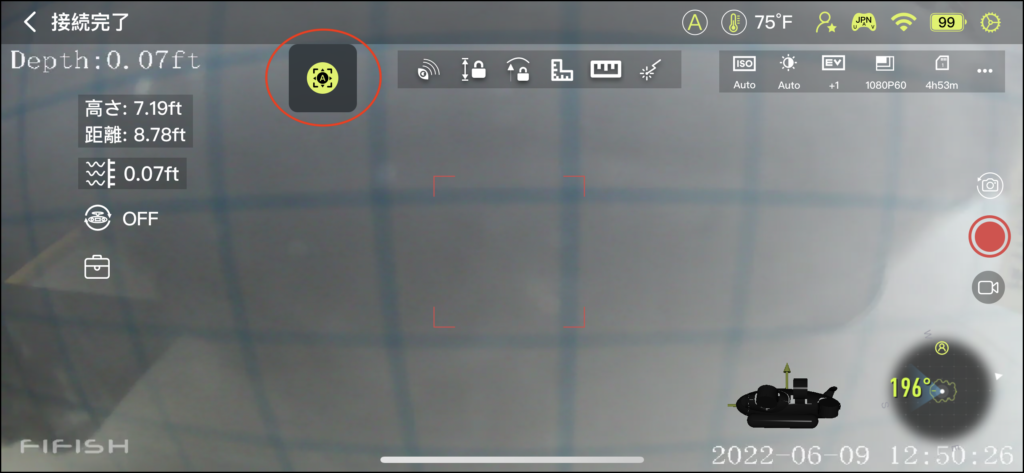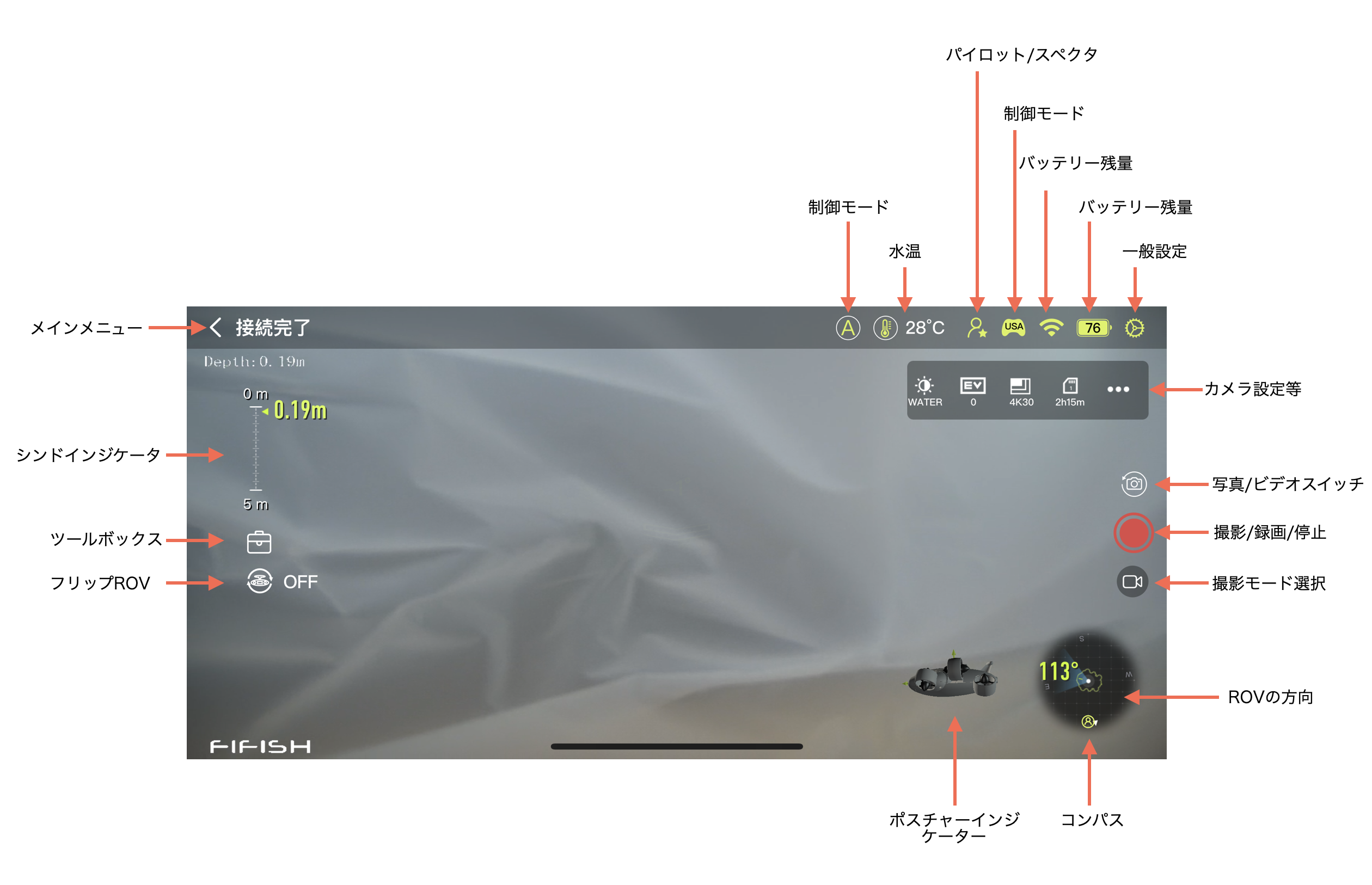 QYSEA FIFISH Vシリーズ(V6E/V6Pを除く) アプリのカメラビュー画面(パイロット画面)について知りたい