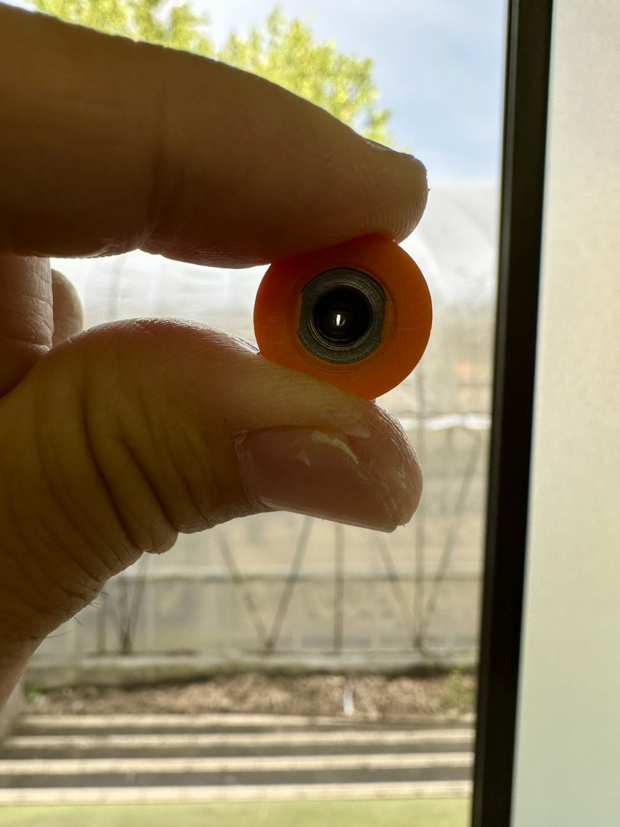 清掃後は下記写真の通り、太陽や明るい場所にノズルチップを向けて