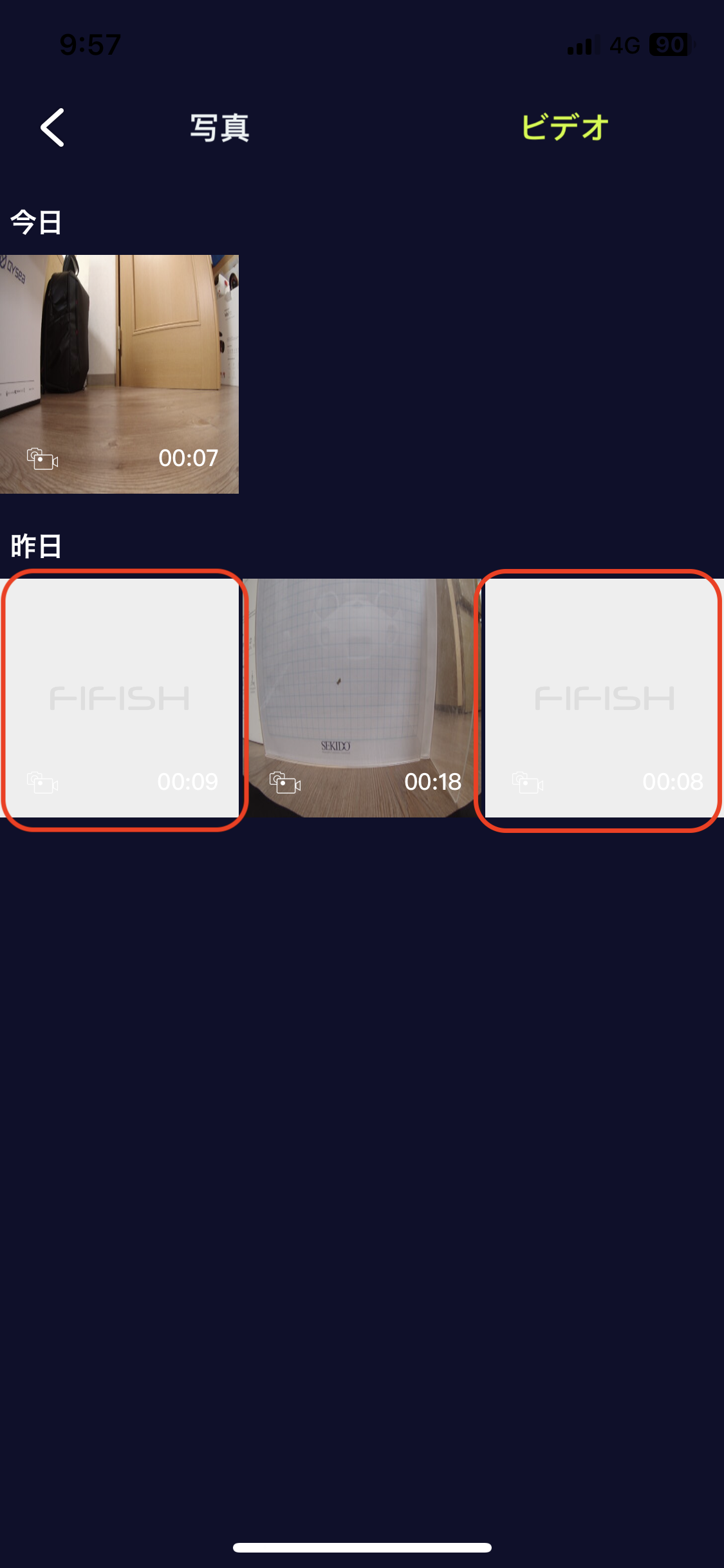 撮影したデータは容量が大きく、FIFISH APP経由での再生は時間がかかったり、通信状態・端末のスペック不足等により以下のように正常に再生ができない場合があります。