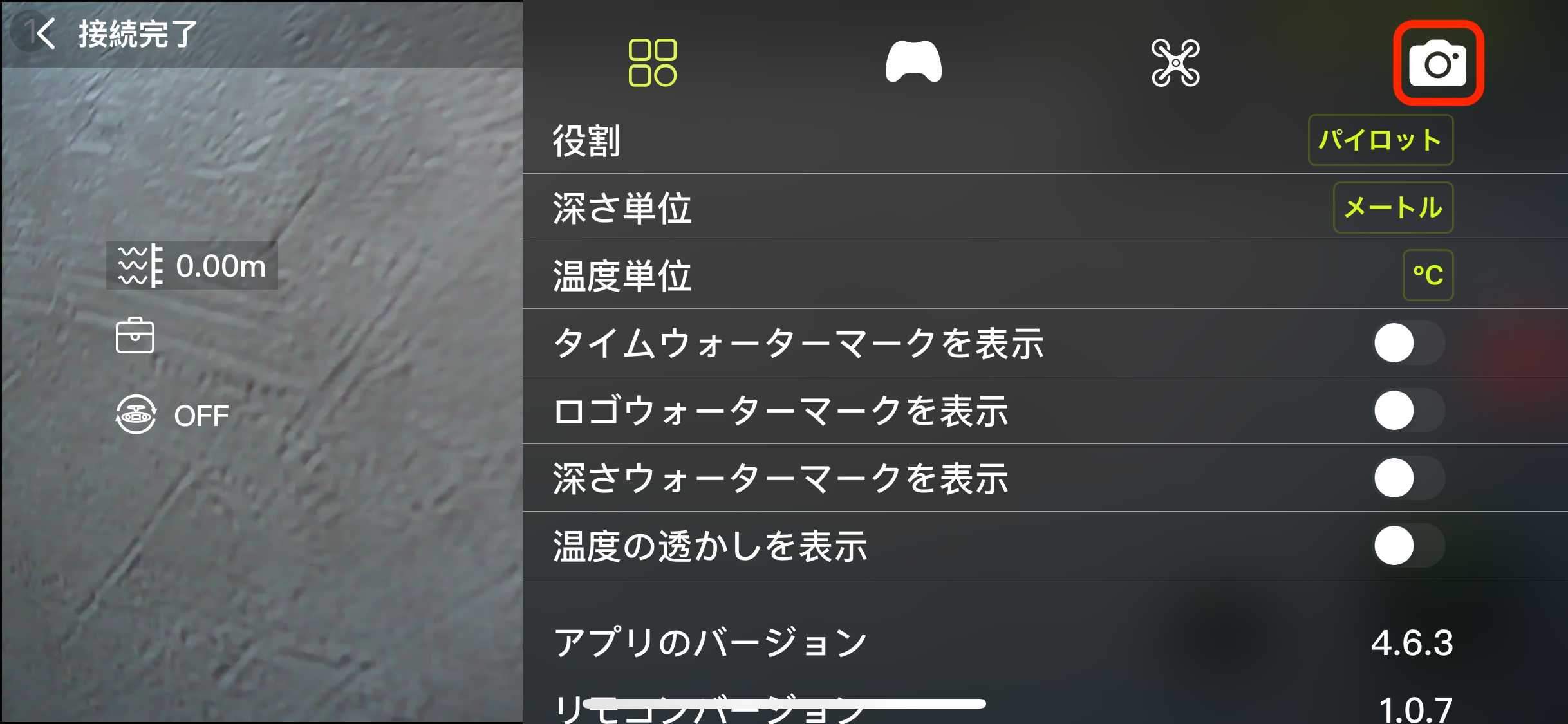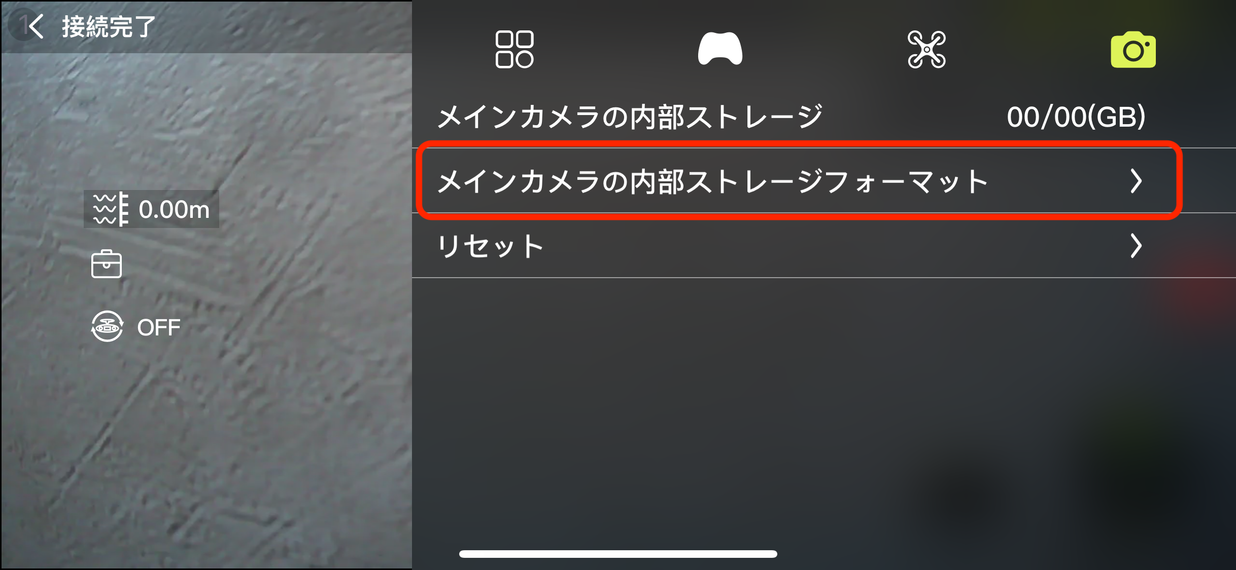 新しく入れたSDカードが認識せず、撮影データが保存できない場合は、FIFISH APP内からSDカードのフォーマットを行ってください。