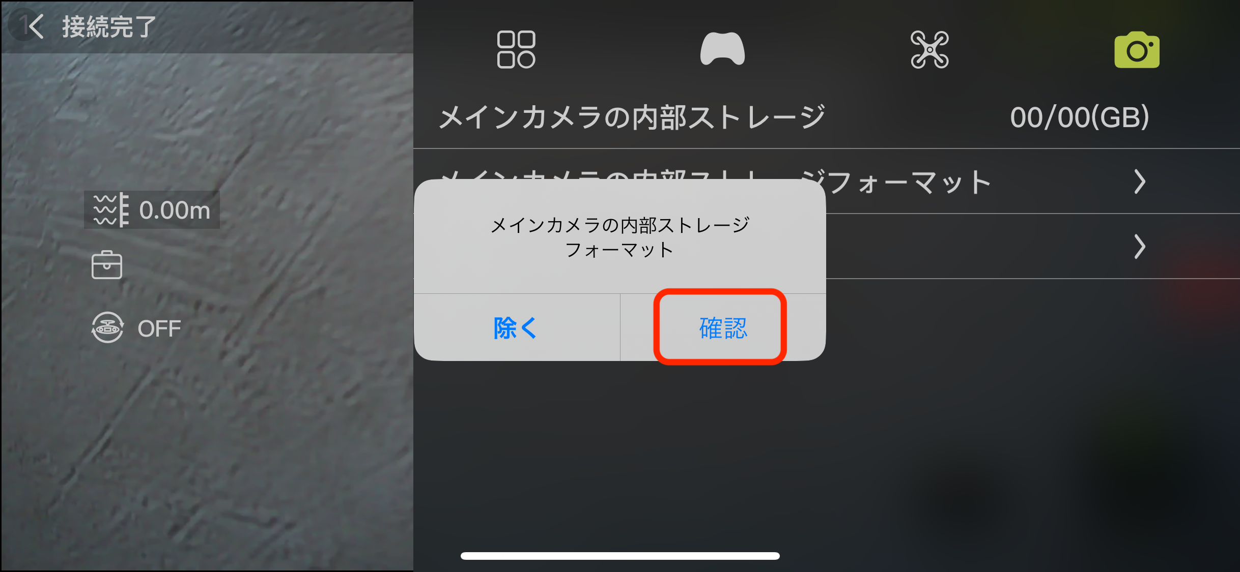 5.フォーマットが正常に完了すると「メインカメラの内部ストレージ」に容量が表示されます。