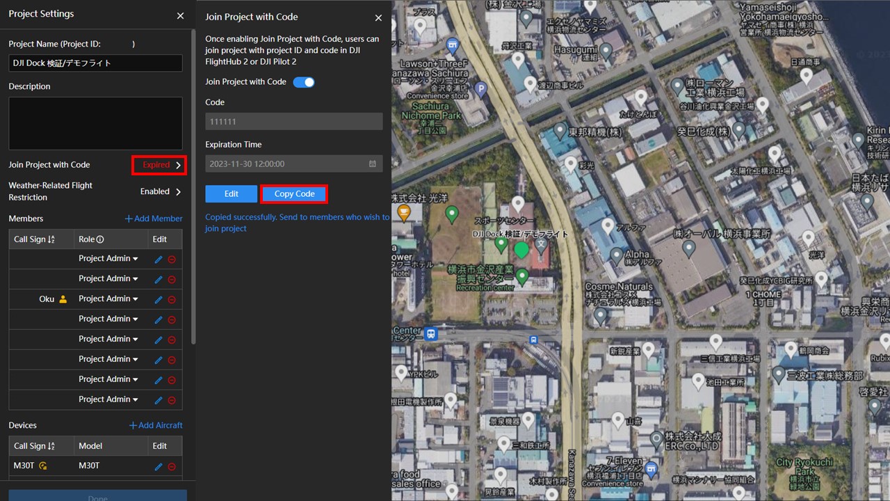 2. DJI Pilot users can enter FlightHub 2 and join project with project ID and code