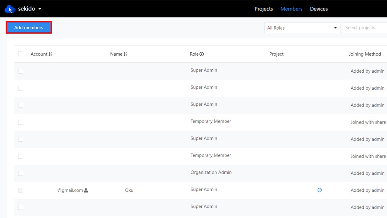 4.プロジェクトを作成し、Project Settings の「+Add Member」より追加ができるようになります