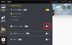 ③ネットワークRTKをオンにします(黄色がオンの状態)